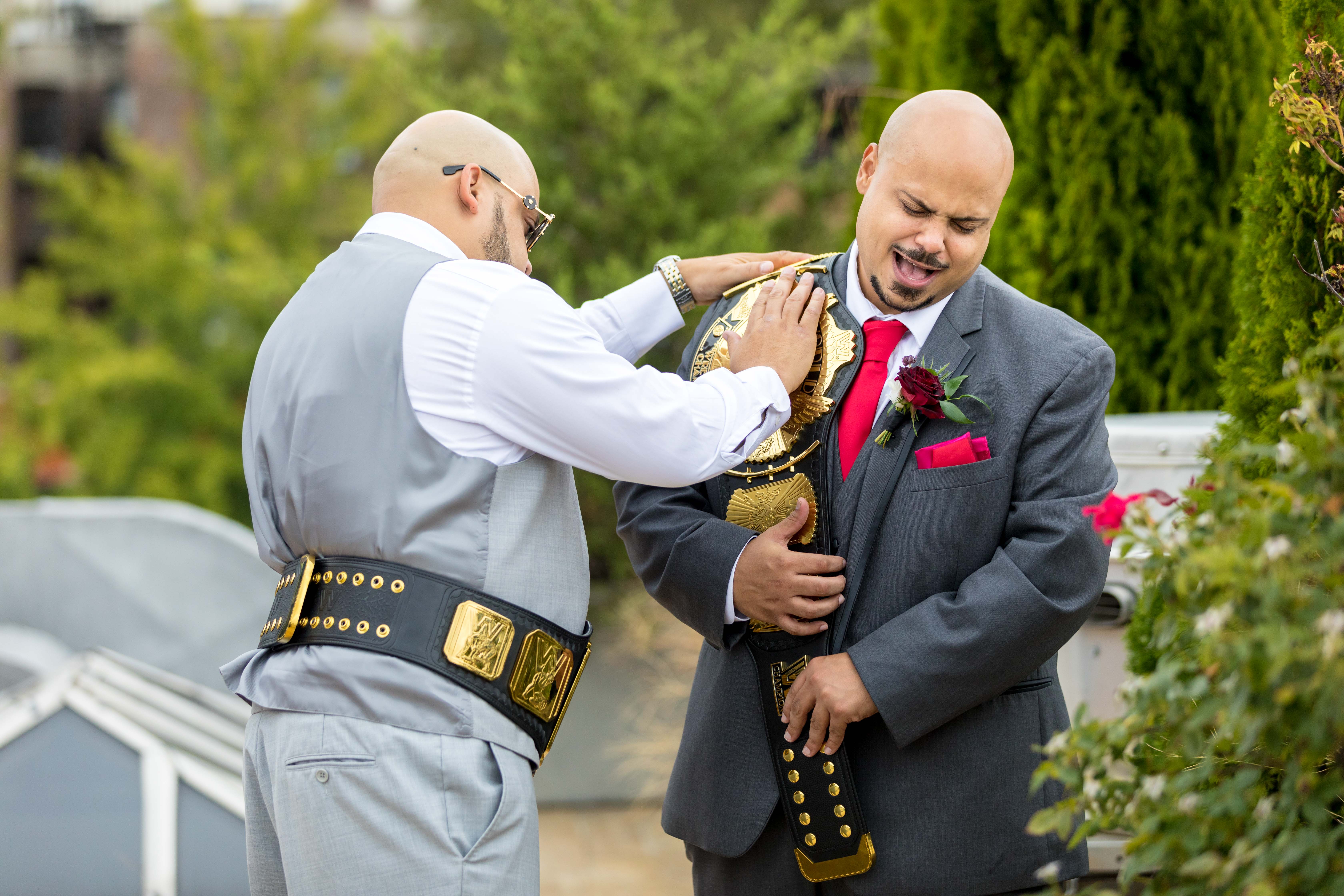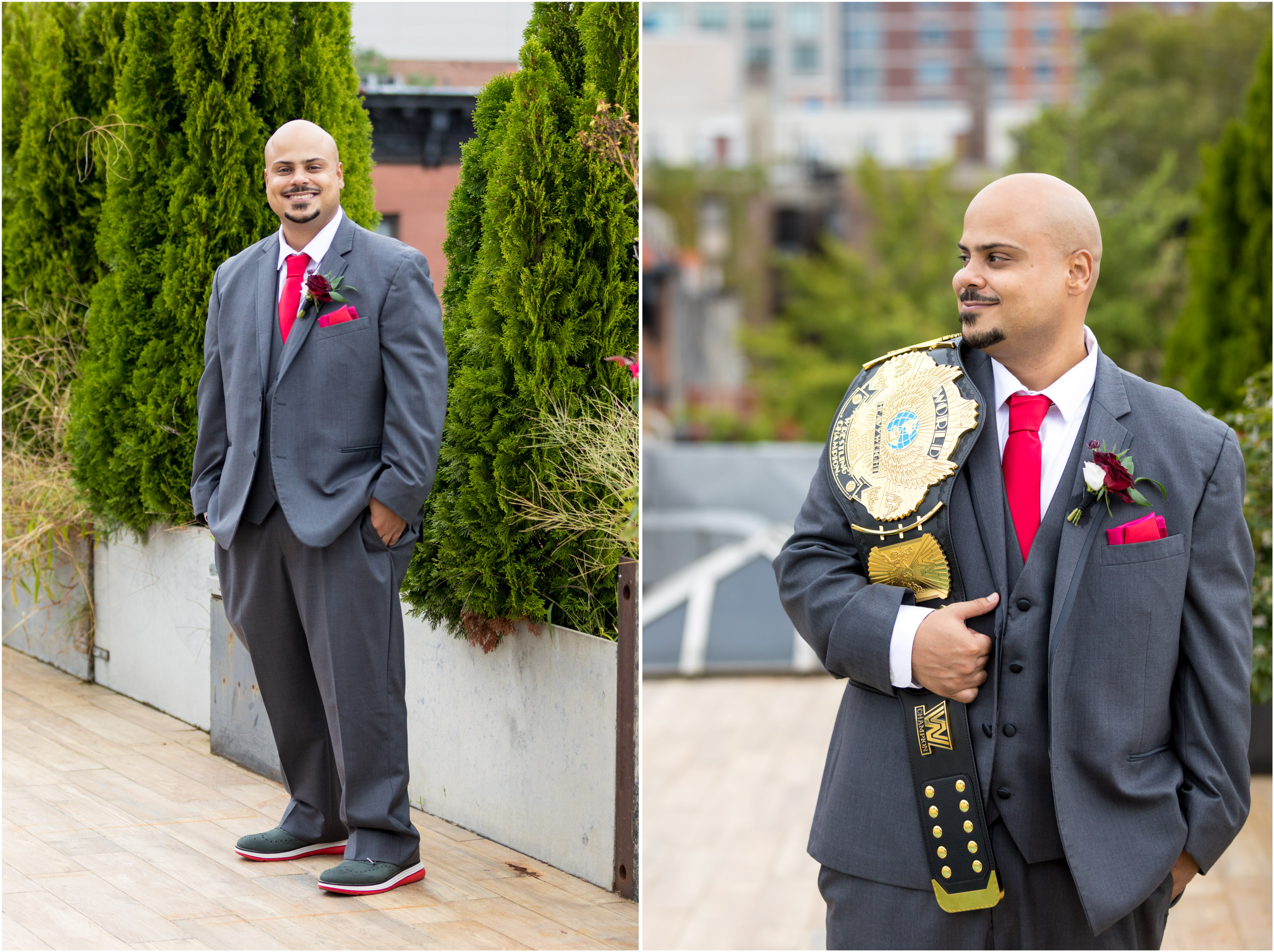 Alex’s and groomsmen’s attire: Men’s Wearhouse