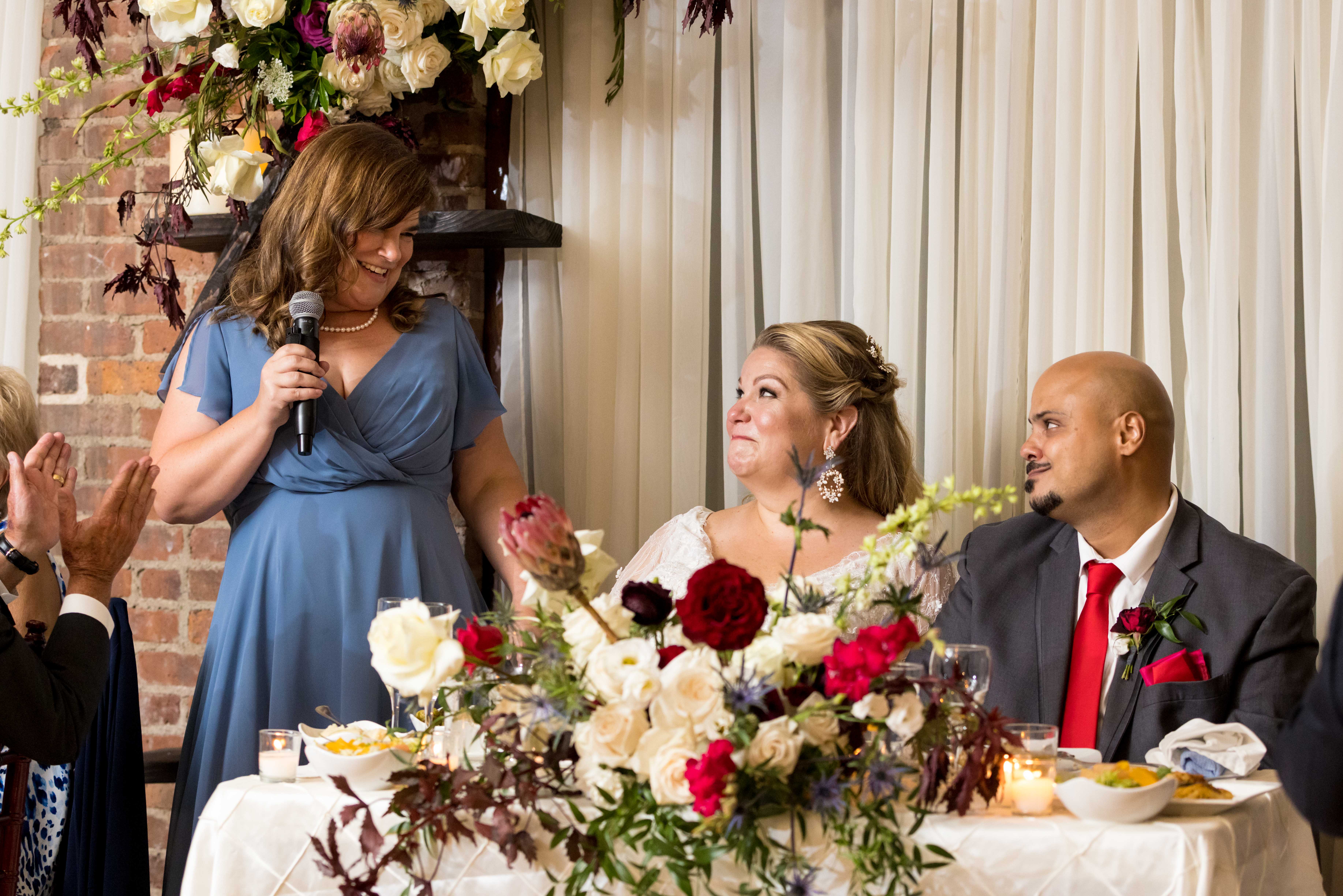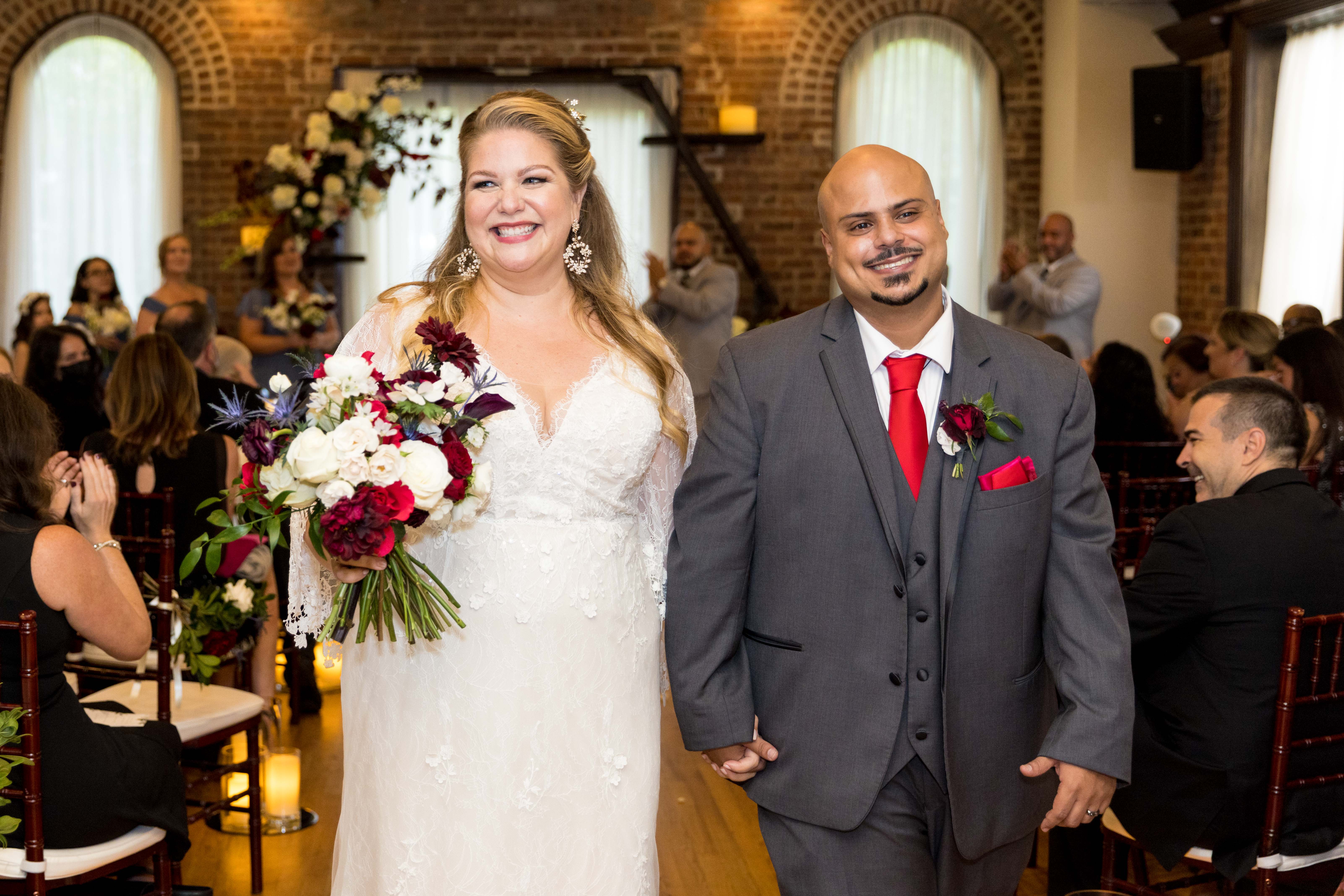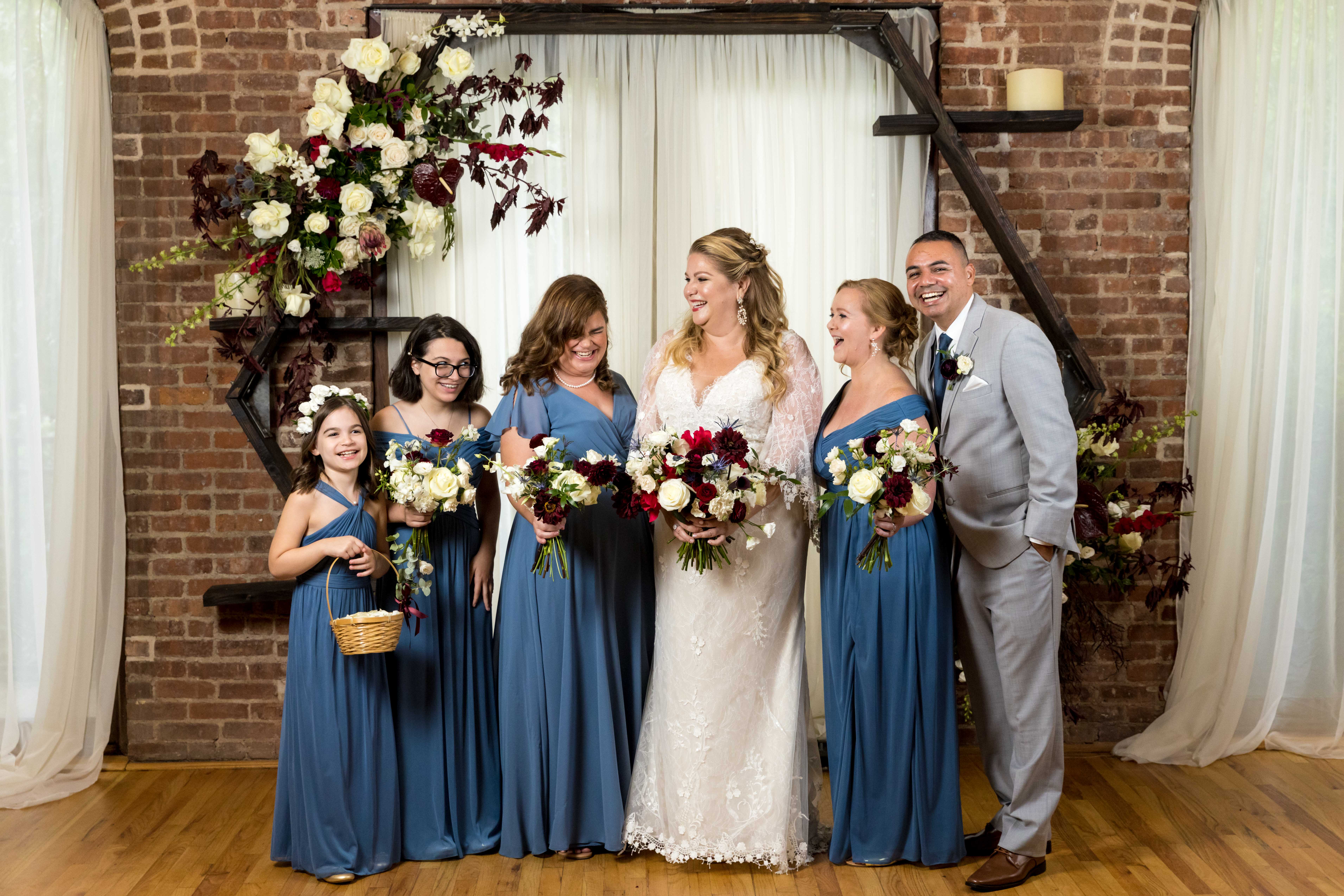 Jennifer’s and bridesmaids’ attire: David’s Bridal