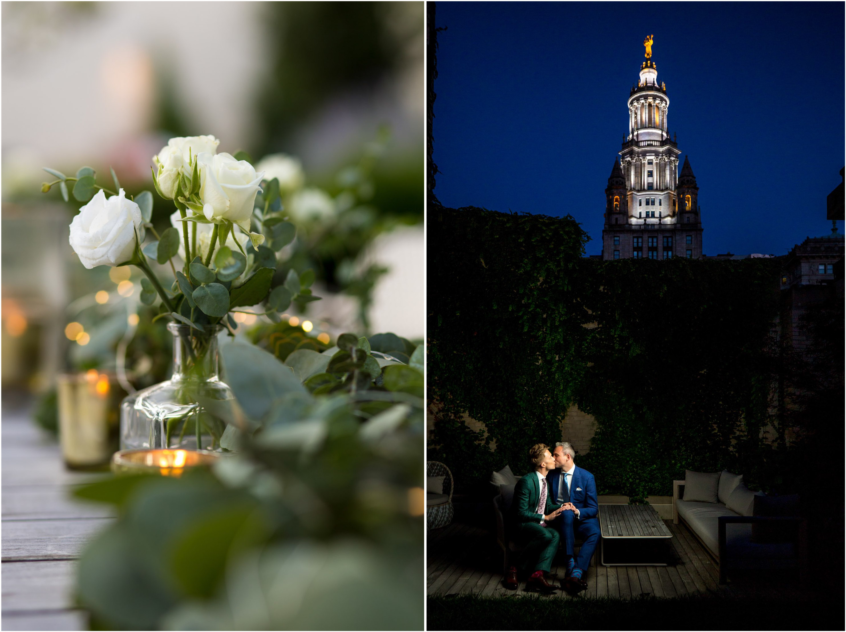 Let’s rewind. In 2019, Ben and Craig planned a 100+ person wedding for the fall of 2020… We all know that that didn’t quite go as planned. Like many couples, Ben and Craig were faced with the decision of postponing or downsizing, and they chose both. In September 2020, they would become husbands in a very intimate rooftop wedding, and then they’d have a big party celebration a year later.
